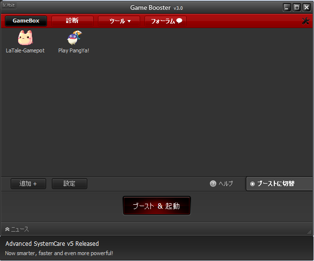 あとは「GameBox」から起動したいGameをクリックして「ブースト&起動」ボタンを押すだけでOK
