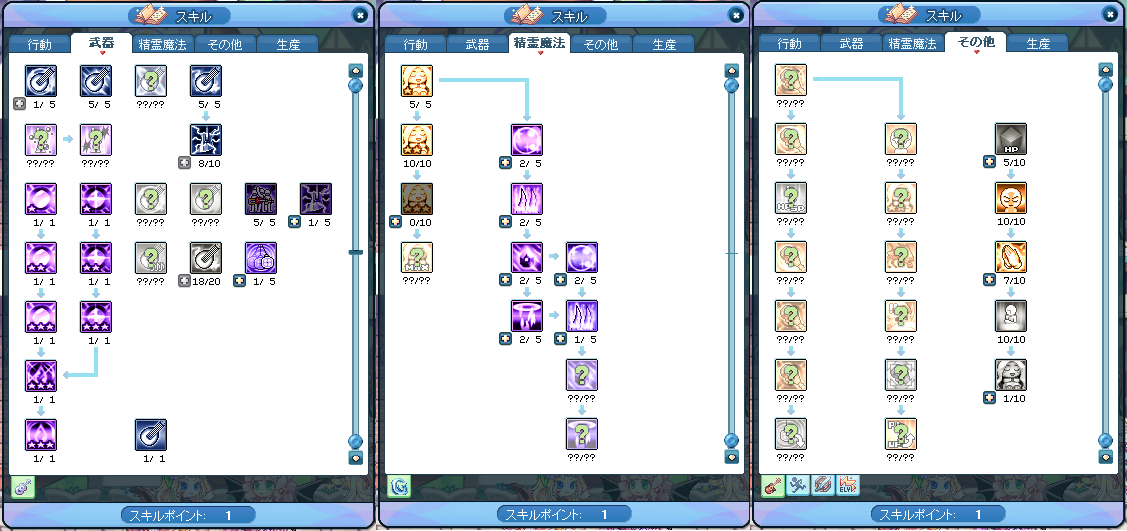 蒼い金魚、Lv162の段階でのスキル振りです