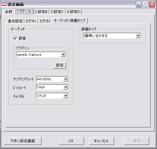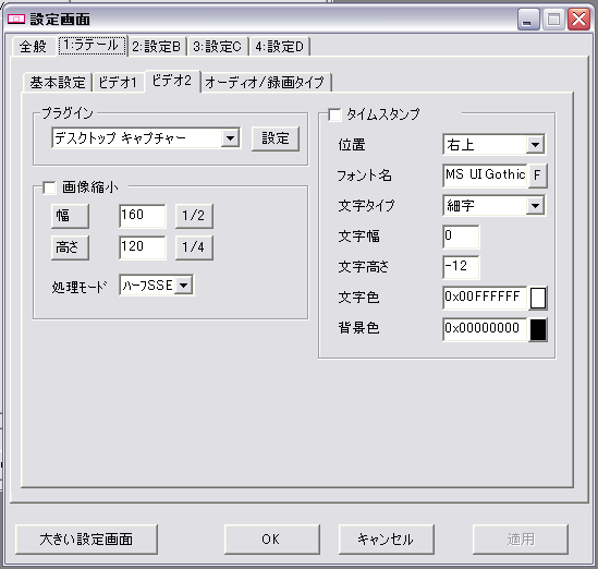 (使用コーデックについてはビデオ1設定参照の事)