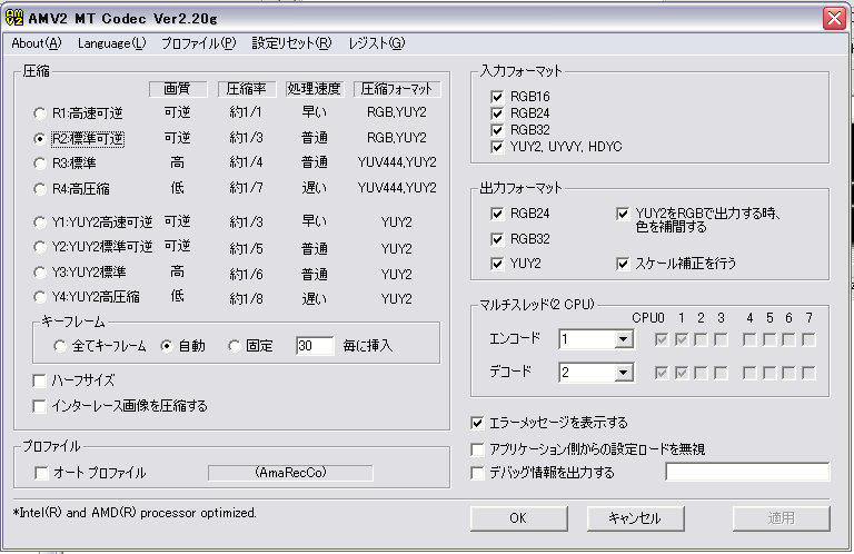 公式HPからアマレココ本体とAMV2MT/AMV3 ビデオコーデックをDLしてね