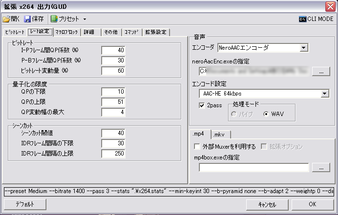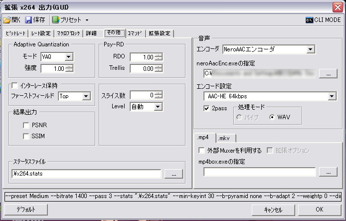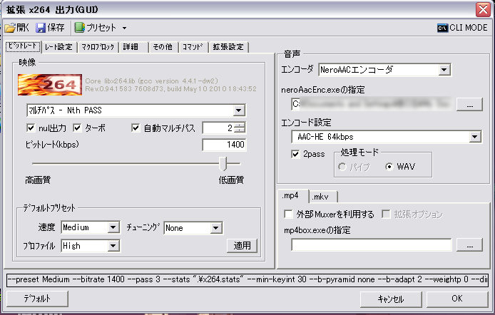 参考サイト③:aviutl_h264(AviUtlを使ったMP4(H.264)エンコード)