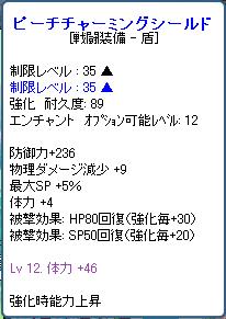 温泉で拾った桃盾を何気にエンチャしてみたら・・・12pzまで貼れてしまいました・・・。