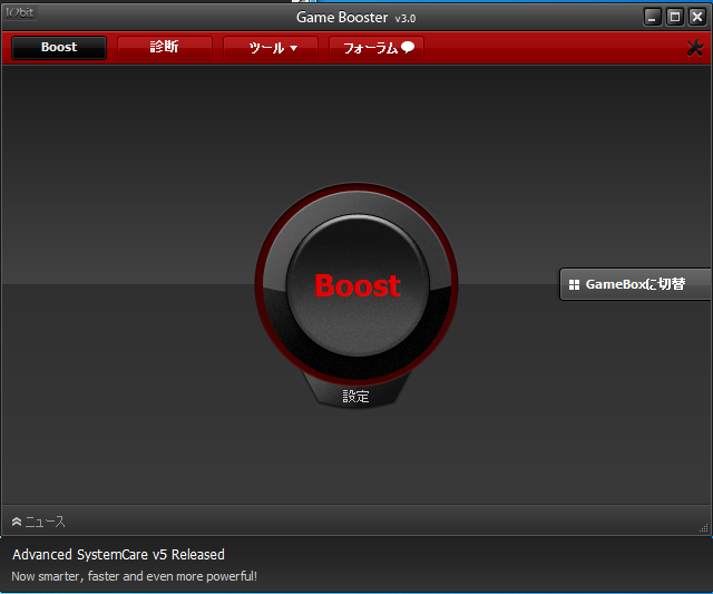 Game Boosterを起動後「ブーストに切替」→Boostボタンをクリック