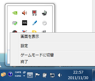 Game Boosterを起動後からはWindowsのタスクアイコン右クリックでゲームモード、ノーマルモードへの切替が可能です。