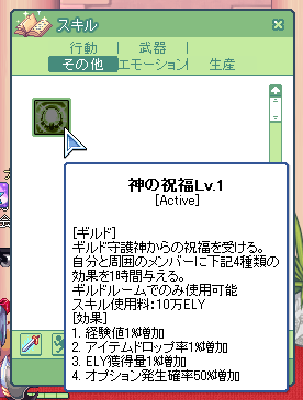移動速度系が全部上がるんですね~そして詳細に書いてある「神の祝福」スキルが気になるところ・・・。